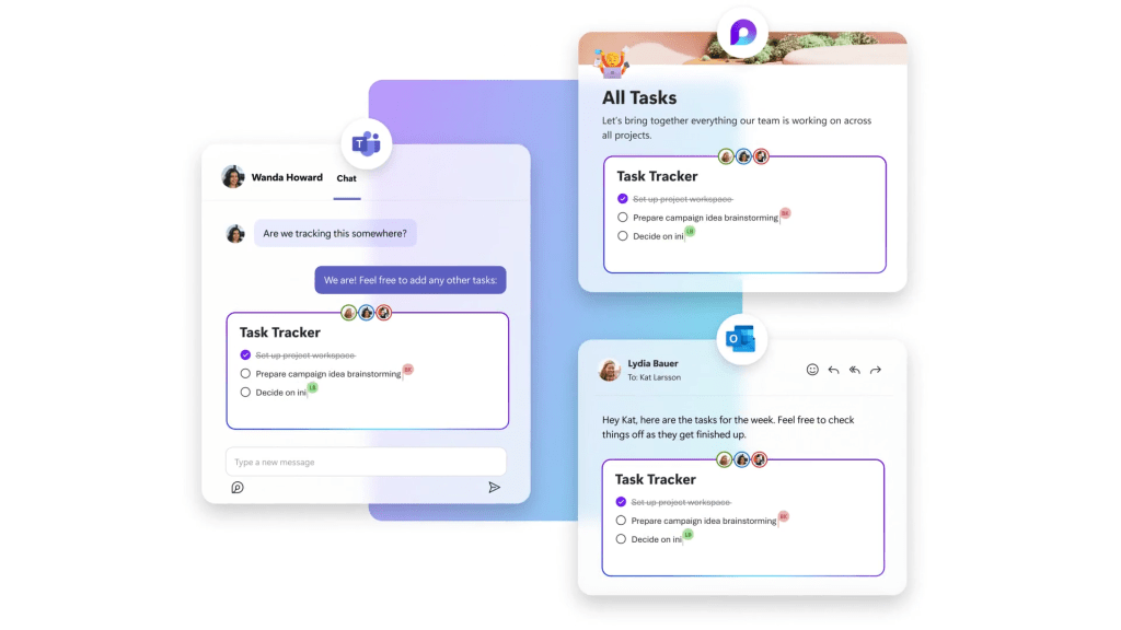 - Embed live components from other apps, such as lists, tasks, polls, calendars, and forms.