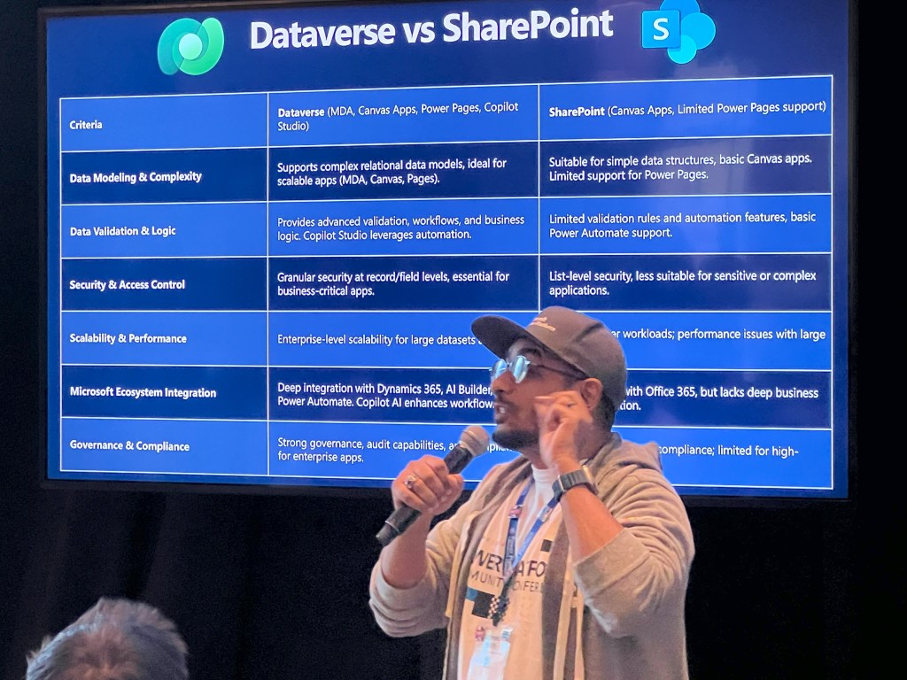 One of the key focuses of my Day 4 sessions was Microsoft Dataverse, Microsoft’s powerful data platform designed to centralize and manage data securely. As someone already using SharePoint Lists, I wanted to understand how Dataverse could offer more robust data management capabilities and what the migration path would look like.